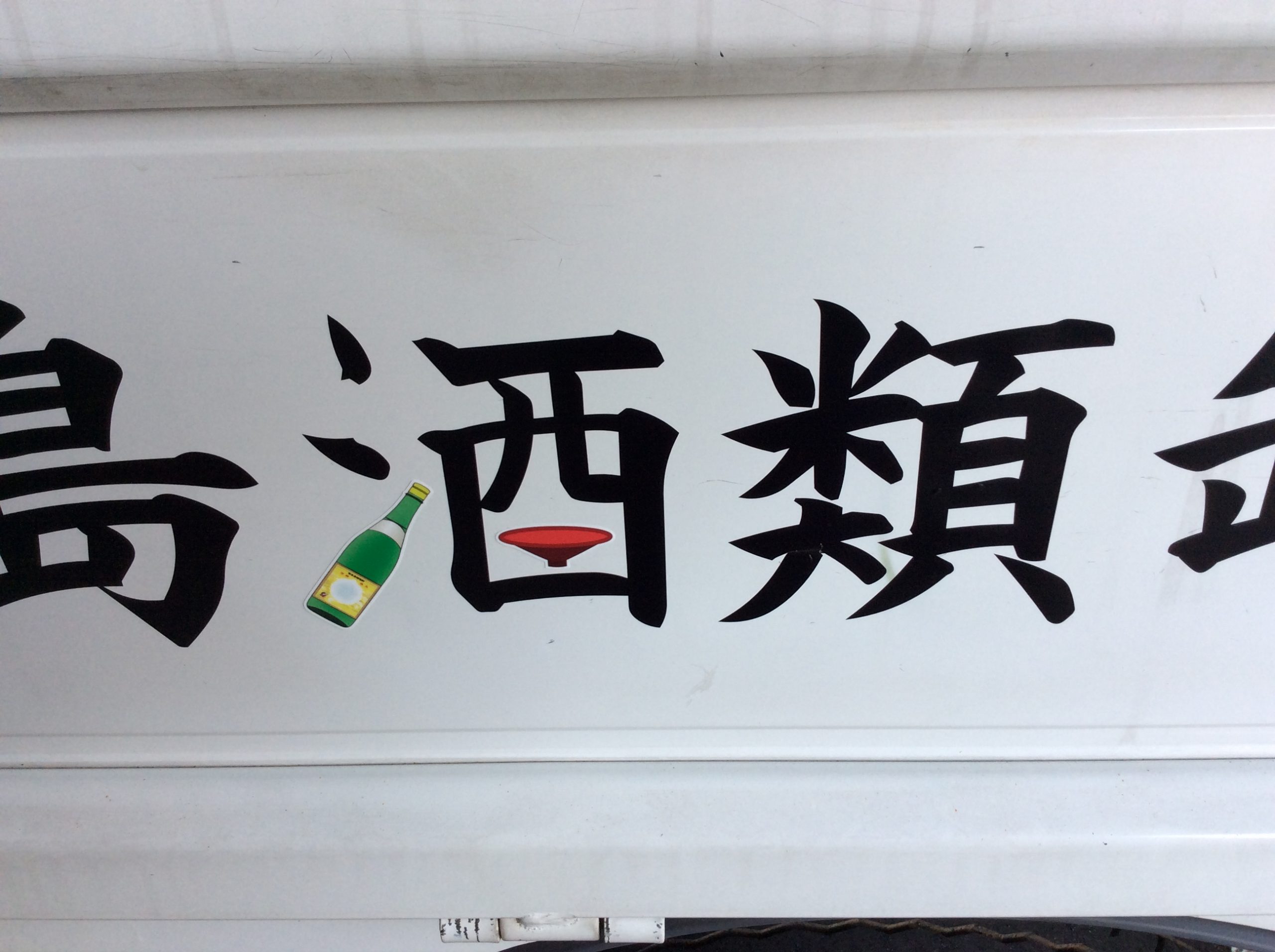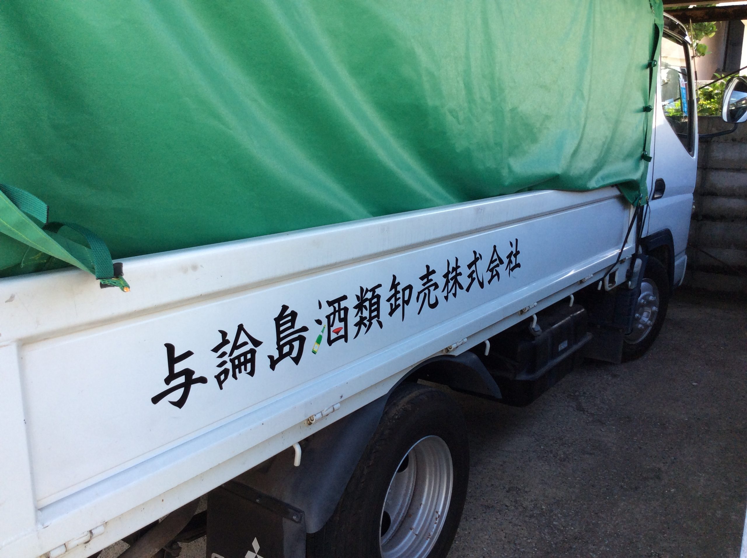 与論島酒類卸販売株式会社様のトラック背面、側面のカッティングシートをデザイン、製作施工をさせていただきました。