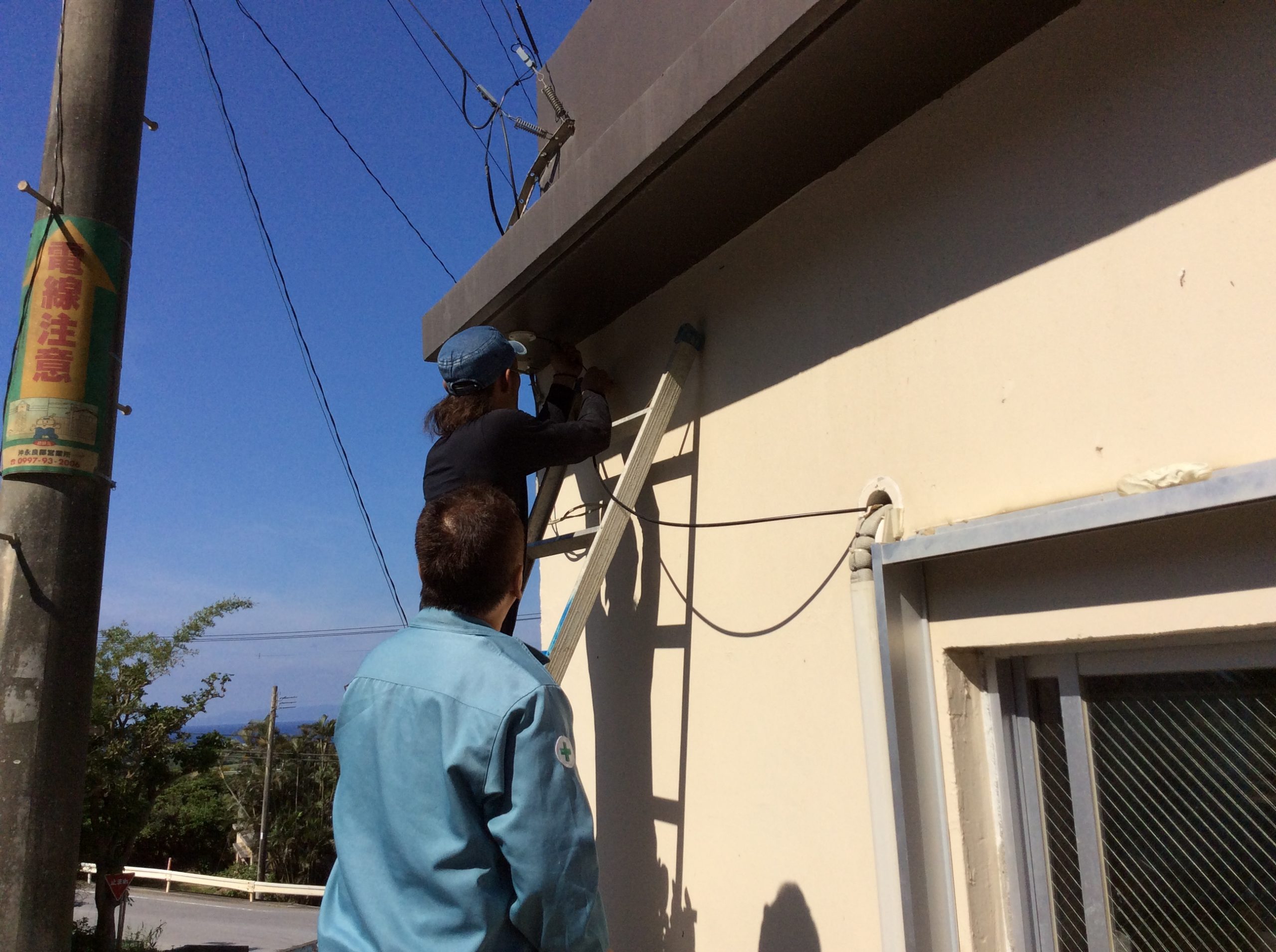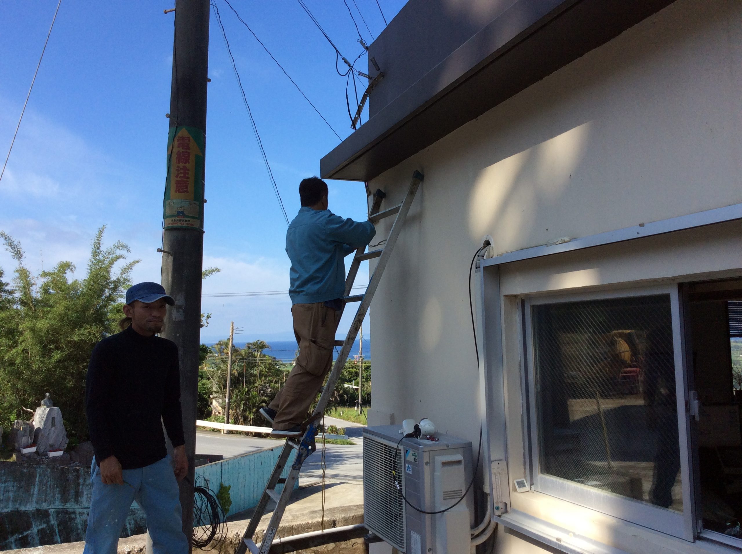 事務所には光回線がありましたが、2台設置予定のカメラのうち、1台は100mほど事務所から離れたところにあり、費用と実用的な観点から今回は同軸ケーブルのカメラを提案、設置をしました。