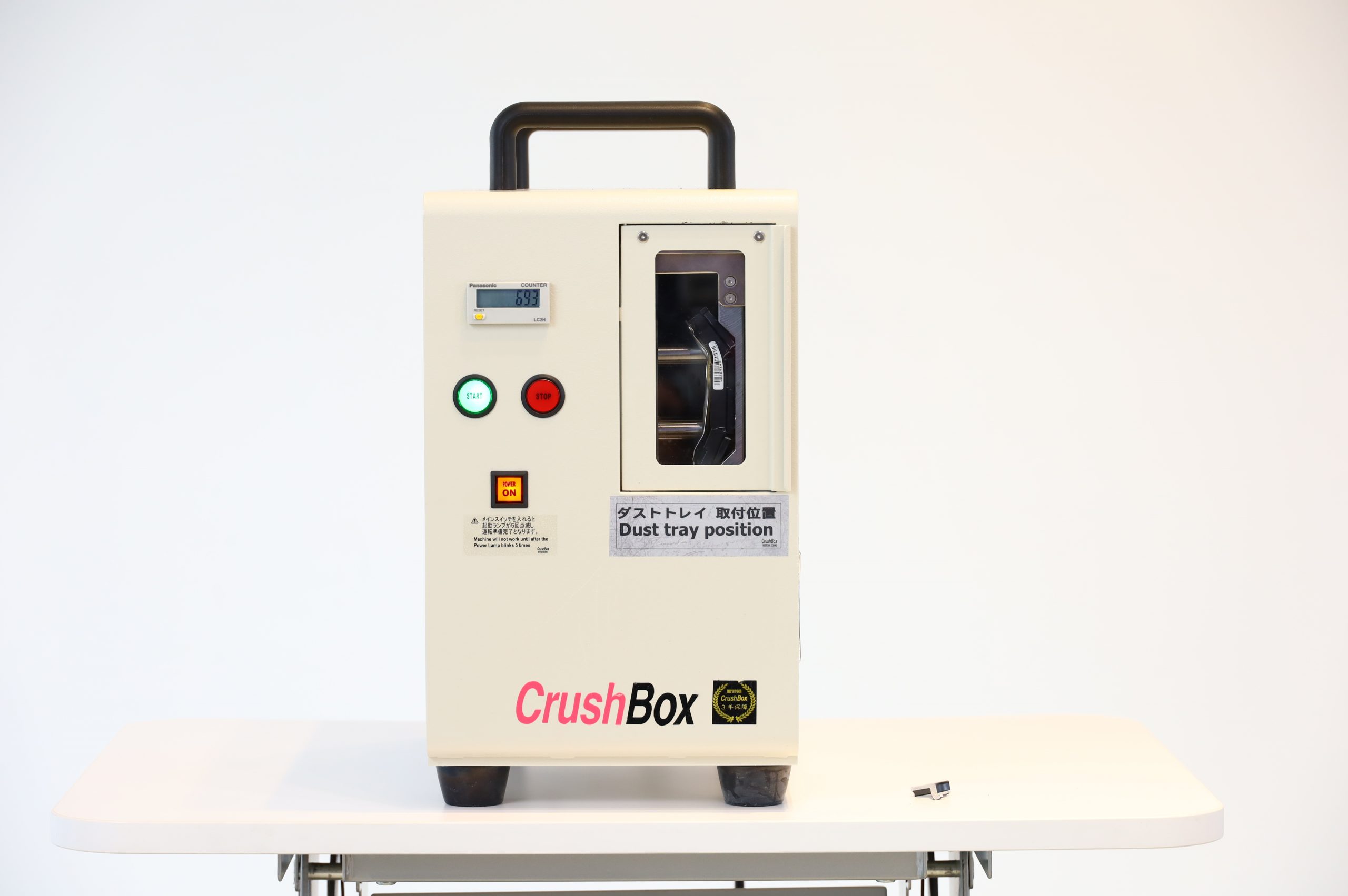 私たちが所有しているハードディスク破砕機を使って、目の前で破砕作業をすることが可能です。